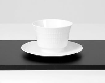 • Peut inclure: Deux tasses en céramique orange empilées l'une sur l'autre. Les tasses ont une finition lisse et brillante et une forme arrondie.