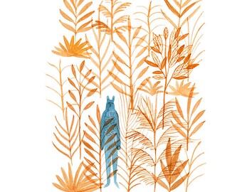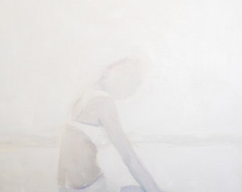 Girls portrait wall art/ Woman figure painting print/Abstract red poppy flower art "Line Dance" SQUARE FORMAT