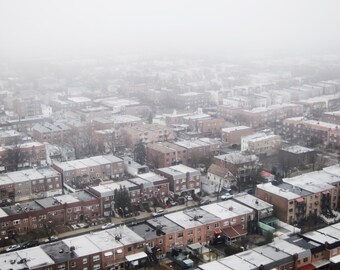A Queens Neighborhood Encased in Fog - Signed Archival Fine Art Print - Street Photography by Sabato Visconti - Aerial New York City Winter