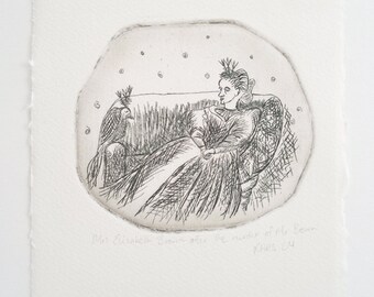 Original fine art intaglio etching - Elizabeth Brown after the murder of Mr Brown