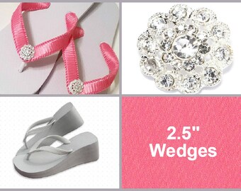 Hot Pink 2.5" Wedge Heel, Bridesmaid Wedge, Bridal Wedge Flip Flop, Hot Pink Wedge, Hot Pink Flip Flop, Bridal Flip Flop