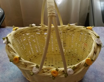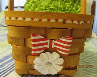 Basket Flower Girl Wooden Painted Red and White Accents Patriotic Red and White Bow White Flower With Bling Home Decor Gift Storage