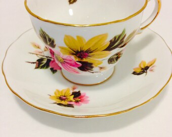 Royal Albert Bone China, Cotswold Teacup And Saucer, Teacup 1940's, China Saucer, Vintage Teacup, Pink Flowers Teacup, China Teacup