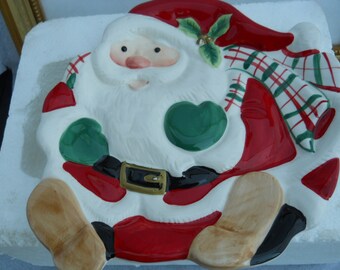 Vintage Santa Candy Dish Is a adorable chubby Santa a really Jolly old Saint Nick.This item is big enough to also serve as a Cookie tray.
