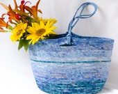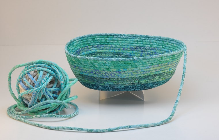 Cotton rope bowls and baskets. Choose between natural rope and those wrapped with bright beautiful batik fabrics.