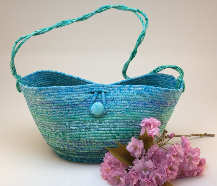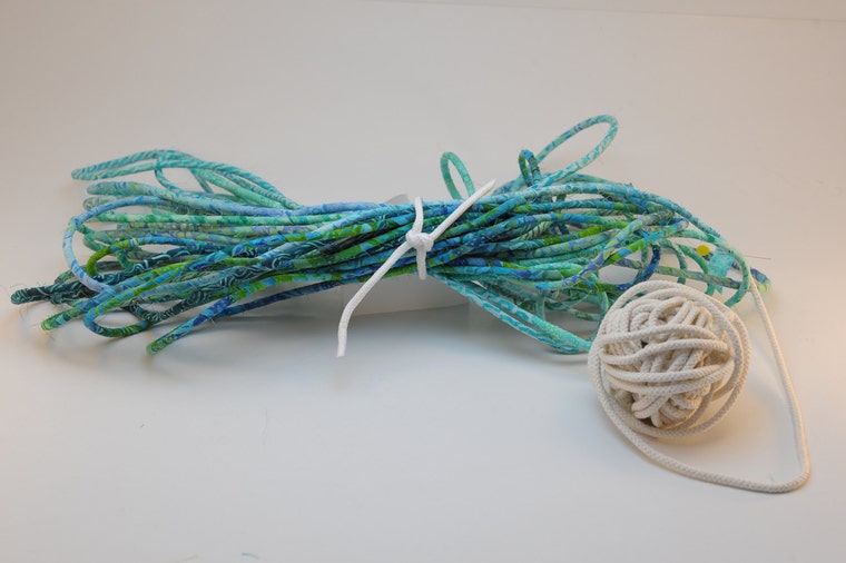 The strips are wrapped around 1/4 inch polycotton cord. This bundle is ready to be sewn into a purse. -