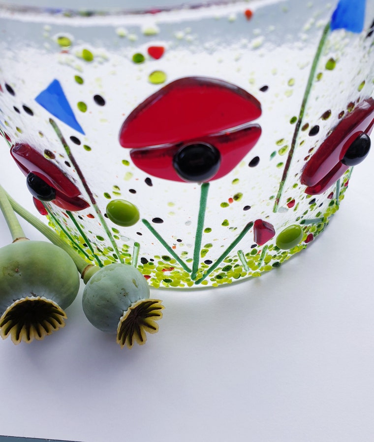 I love the process of making fused glass pieces. Every piece I make is hand cut and assembled and then fused in a kiln for up to 16 hours. Some pieces need to go into the kiln twice to take on a shape or get the final finish. They are then hand finished. Each piece is unique and although you can ask me to make it again I can't guarantee that it will come out the same. That's what makes it exciting. There is an element of alchemy!
