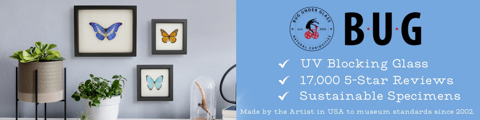 What sets my work apart is a combination of scientific training, museum-quality craftsmanship, and a deep love for the natural world. Each framed display features archival materials, 99% UV-blocking glass, and a museum-style label that shares the story behind the specimen—making every piece both educational and enduring.