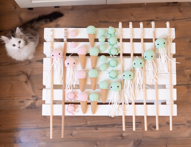 P: ¿Puedo personalizar mi pedido de juguetes para gatos?R: ¡Sí, me encantan los pedidos personalizados! Esto puede incluir variaciones de color, añadir una campana o, en algunos casos, el nombre de tu gato. Si tienes una idea específica, contáctame antes de realizar tu pedido para hablar sobre tu solicitud y confirmar su viabilidad.