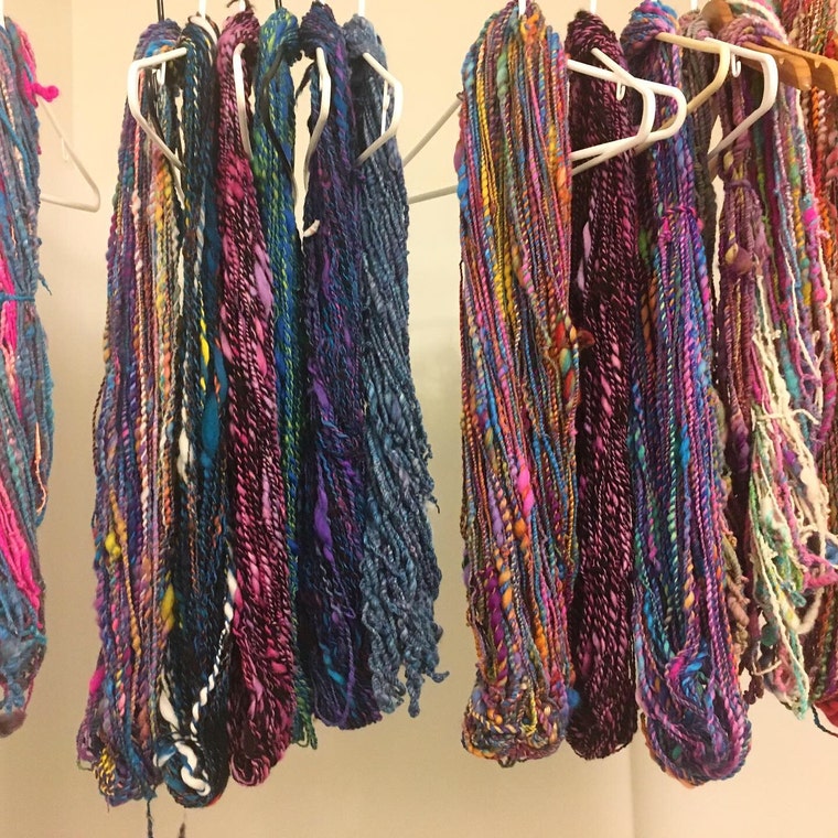 For items made from the hand spun yarn and the yarn spun from the rolags, I highly recommend hand washing them by hand and drying flat if they need to be washed.