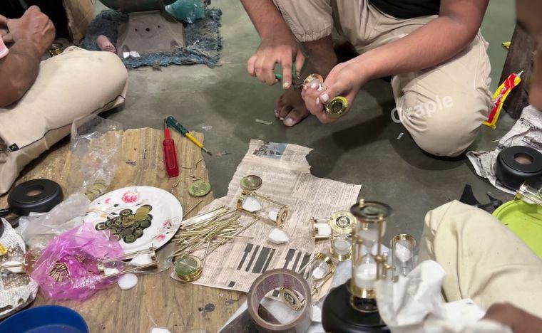 Unser Team ist klein, aber schlagkräftig: mehr als fünf erfahrene Handwerker mit über 15 Jahren Erfahrung in der Herstellung von Messing- und Kunsthandwerksartikeln. Wir verfügen außerdem über einen engagierten Experten für sichere Verpackungen und zuverlässige Kurierpartner, die dafür sorgen, dass Ihre Bestellung sicher und pünktlich bei Ihnen eintrifft.