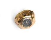 4 out of 5 starsLove the piece! seller shipped same day but the item sat for three days and marked delivered when it was not (no fault of seller but stressful for recipient) seller redirected to USPS claim resulted in the package being retrieved! I always receive my Etsy packages without issue so this is not a typical experience. Received in working/ticking condition. Heavy and substantial. Fits on my middle finger size 6ish. Shiny! I will remove when hand washing just proactively. Very chic and stylish ! Recommended purchase.