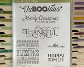 3 out of 5 starsThis is a great stamp set of Fall/Christmas holiday greetings. I took the 2 stars off due to the stickers attached to the stamp case, rather than on the stamp itself. The stamps themselves, though, are in good condition, and I would definitely buy from this seller again.