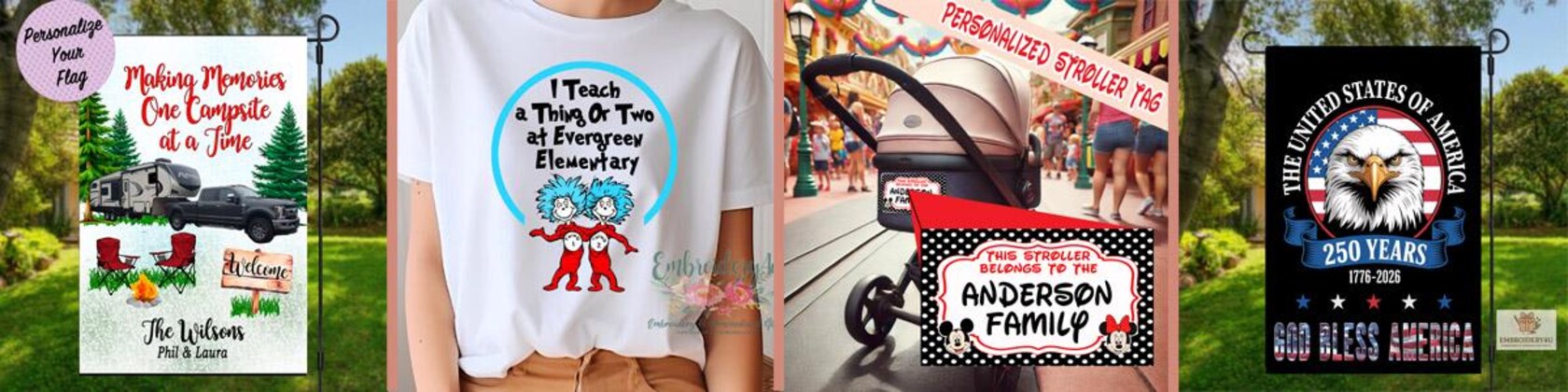 What began as hairbows soon evolved into headbands, then tutus, and eventually into other handmade crafts. I wanted to offer complete looks—personalized shirts to go with the tutus and bows—so I invested in a small sewing and embroidery machine and began teaching myself everything I could. I quickly fell in love with embroidery. I started creating custom applique character shirts, monogrammed bows, embroidered baby gifts, tote bags, garden flags, wedding gifts—you name it.