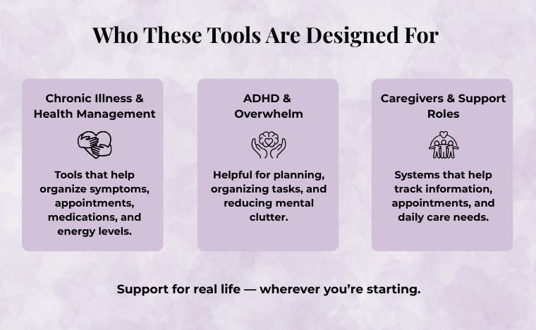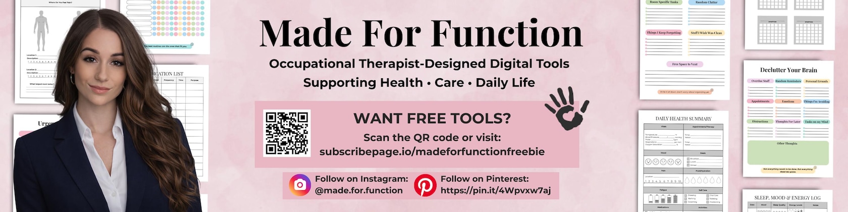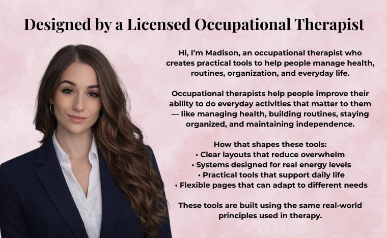 That belief is what led me to create Made for Function—a shop full of digital tools designed to support real people through real challenges. Whether you’re a caregiver tracking symptoms, a therapist organizing goals and documentation, or someone managing ADHD, executive dysfunction, or chronic health needs, these tools are here to help.