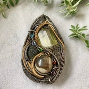 A self taught wire artist since 2013. Jon truly found his creative path from scratch. Some of Jon’s original pieces were made from river rocks and craft wire. His practice has grown into creating high end talismans with precious metals and gems.