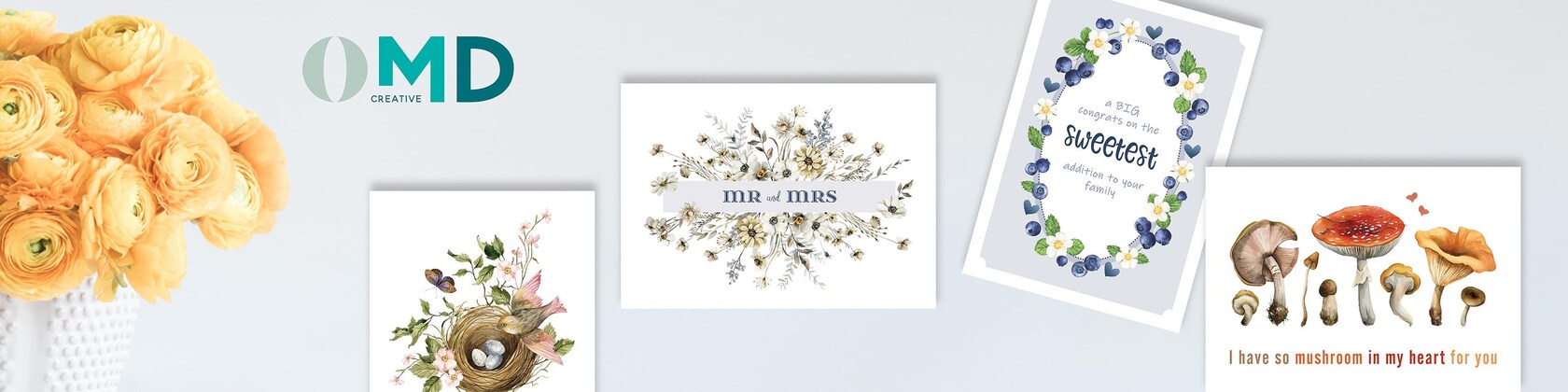 Hello there! I am Elvira, the designer behind OMD creative. I love nature with an obsession and am passionate about beautiful design. My design work is elegant, featuring various elements of nature, and has a west coast aesthetic