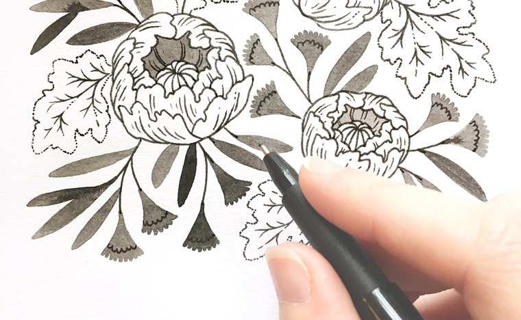 A work in progress with India Ink and Graphite. Finished with Inking Pen. Photo by Paper Raven Co. -