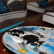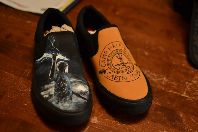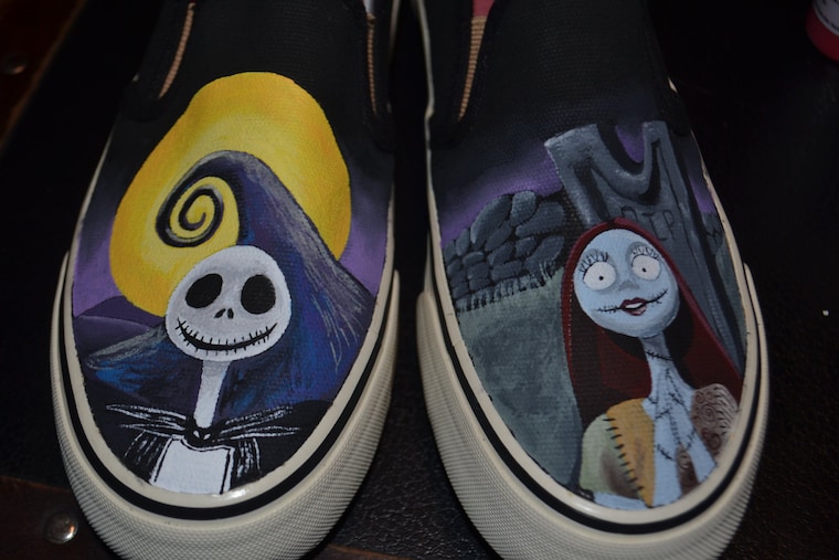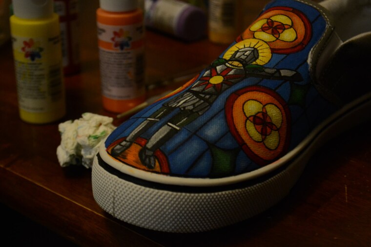 I'm a painter and more recently have gotten into photography. I've studied fine arts and painting at Kendall College of art and Design. I love making wearable art and shoes have been my outlet. I use generic brand canvas shoes and I paint them with acrylic paints. My husband has been a huge inspiration in my painting style and subjects I would classify it as Geekery :P