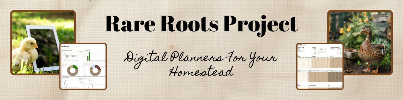 Our products—Google Sheets, Excel documents, and PDFs—are designed with love and real-life experience. They help you plan your garden, manage your chickens, and keep your homestead running smoothly. Plus, they’re beautifully designed in farmhouse chic and modern industrial styles, with calming tans, greens, and browns.