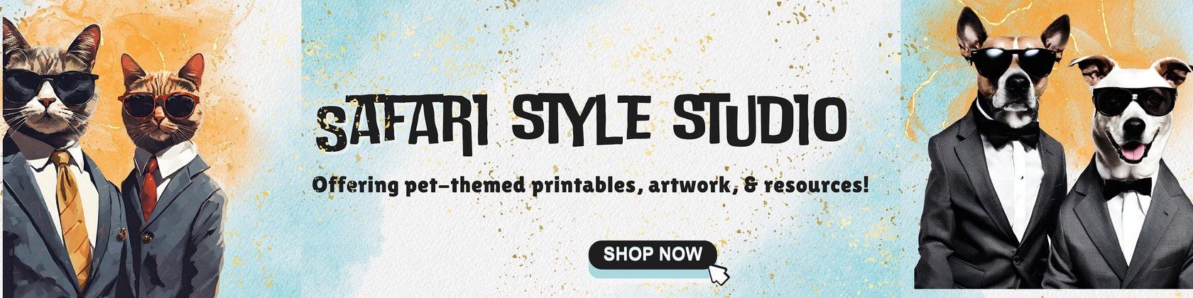At Safari Style Studio, you'll find a treasure trove of meticulously crafted items, each one infused with my love for both pets and planning. From adorable animal art gracing your planners and calendars to posters that will make your walls come alive with furry friends, we've got something for every pet-loving family.