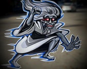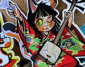 A: yea! I can print anything you like at a custom size from anywhere as small as an inch to as big as a 17x22 poster! - I can also do stickers, pins and even 3d prints! a holographic laminate overlay is also available for most stickers. (makes them stronger & fully finger proof.) – I am usually available for hire and can draw custom stickers buttons and Print designs at an hourly rate (scroll down for more info.) - If you want to arrange specific custom sizes/cuts for your order please contact me in the chatbox at the bottom of the screen: