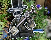 My Stickers are weatherproof which means they'll survive well outside, on a laptop or on a car bumper! – Keep in mind that your fingers and oil ≠ weather. its best to keep them somewhere they will not be in constant contact with fingers!! – However: a custom holographic finish solves that problem entirely and will look very pretty to boot!! I can apply this finish to any of my stickers for just a dollar extra. contact me: samkalensky@gmail.com or through etsy to arrange something.