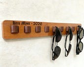 5 out of 5 starsItem arrived pretty quickly, it's really nice, simple design. The only thing I would say is the leather loops are a little close together so it's a bit difficult to have the glasses next to each other. But really nice item :)