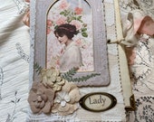 5 out of 5 starsSuch a beautiful, very detailed, and unique journal, designed in one of my favorite colors. I really love the additional sections incorporated into the journal tied with separate ribbons, along with picture frame type photos. I love the writing board, and love that you attached a locket to the outside of the journal. I appreciate the work that has gone into this, and thank you so much for the extra gift!