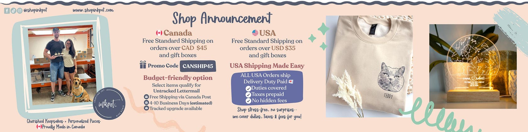 *The above are only shipping estimates, and Inkpot is not responsible for any postal delays in shipping.