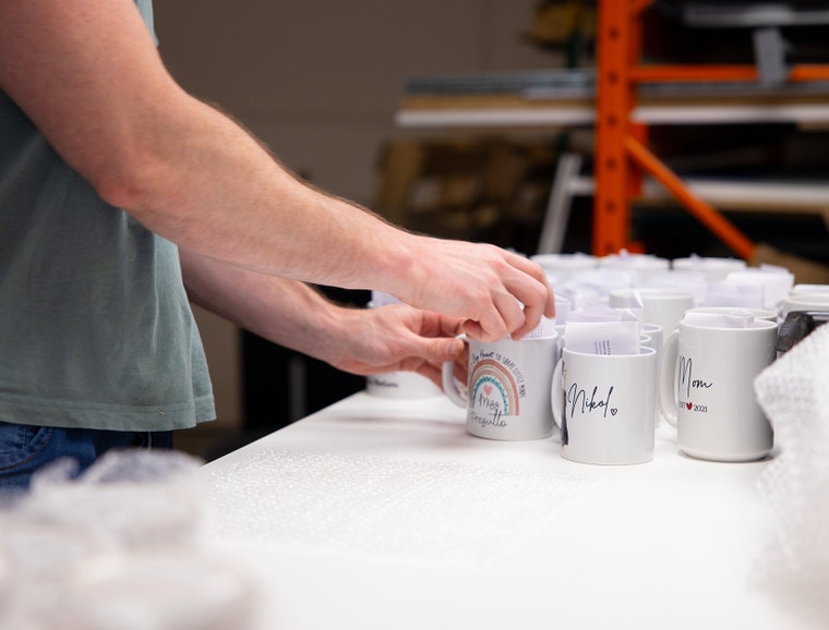 Mugs are dishwasher and microwave safe. We have a few options to choose from for your customized mug: the option of printing One Sided Designs, Two Sided Designs or Custom Note On Back.