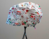 5 out of 5 starsOne of my favourite things in life is tea! This scrub cap is perfect! Plenty of room for your ponytail/bun as it has a toggle to cinch up the excess material so it fits snug. Many thanks!