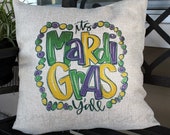 5 out of 5 starsThis pillow was the perfect addition to my Mardi Gras decorations. The pillow went on quite the shipping journey but I don’t think that is the seller’s fault. I would buy from this shop again.