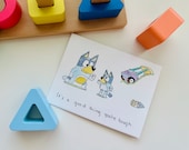The How: I never planned on having children; I was told that I was unable. In that universe, Bluey would have been nothing more than a meme that I ran across on social media and never knew anything more about. Instead, 'Surprise' my husband and I were able to have 2 beautiful children and Bluey is a household favorite! Through the winter season Bluey played almost on repeat most days. So with my background in marketing, my grandfathers art supplies and the sounds of Bluey coming from the living room I found myself inspired to create greeting cards.