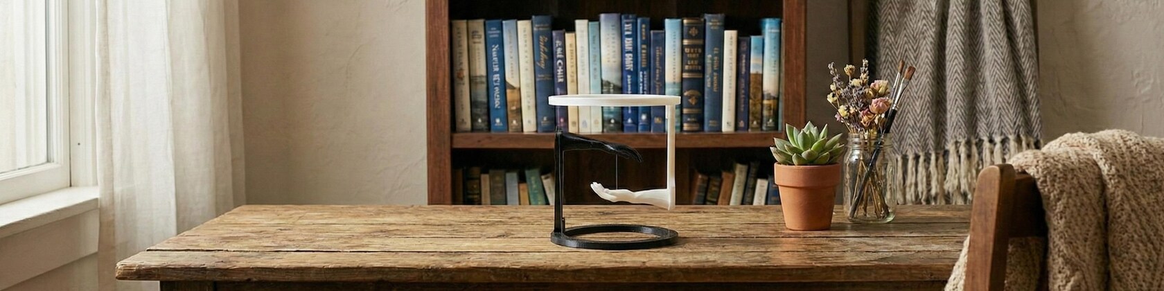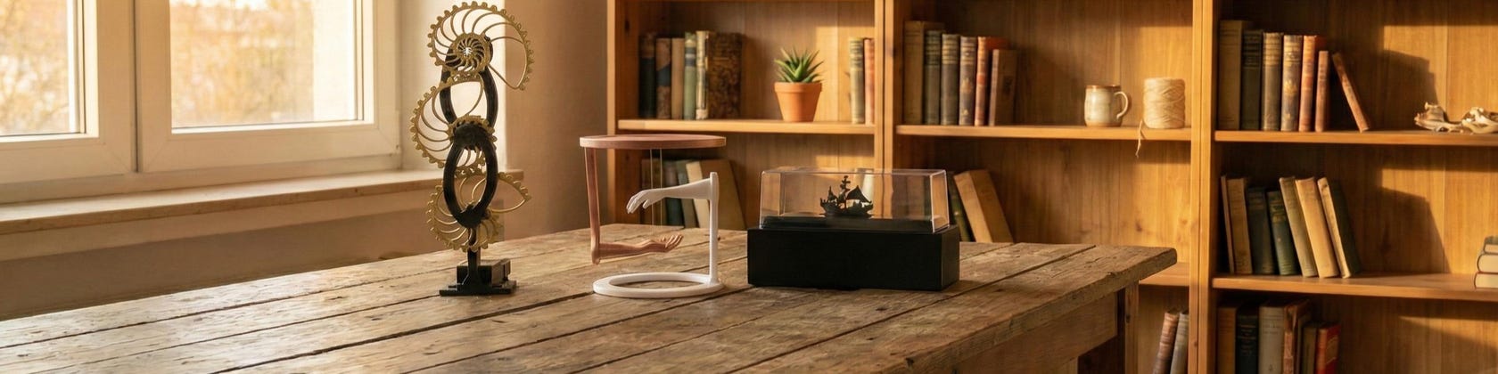 En el taller de mi apartamento, creo arte imposible, desde barcos insumergibles hasta esculturas que desafían la gravedad. Cada pieza está hecha a mano para despertar la curiosidad. Experimento constantemente, por lo que las piezas llegan en lotes únicos y limitados.