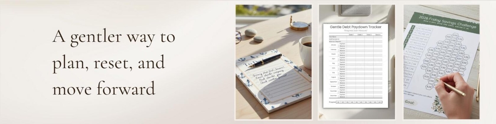 Each design is intentionally minimal, easy to use, and created to support steady progress rather than constant hustle. These tools are made for busy, tired, or overwhelmed people who still want structure — just without the pressure to do everything perfectly.