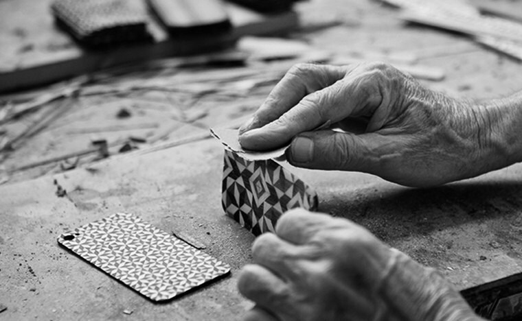 Concebido por Adrián Rosales & Rafael Ruiz Casares, dos diseñadores gráficos afincados en España que han creado una serie de fundas de iPhone artesanales utilizando una técnica original derivada del árabe andaluz conocida como taracea, que tras siete siglos de historia, se mantiene viva en Granada, España. La ciudad donde la pureza y el estilo de este proceso tradicional, con sus generaciones de familias de artesanos que trabajan con paciencia y habilidad para crear composiciones geométricas irrepetibles a partir de materiales de calidad, se implementa en estas fundas únicas de madera para iPhone.