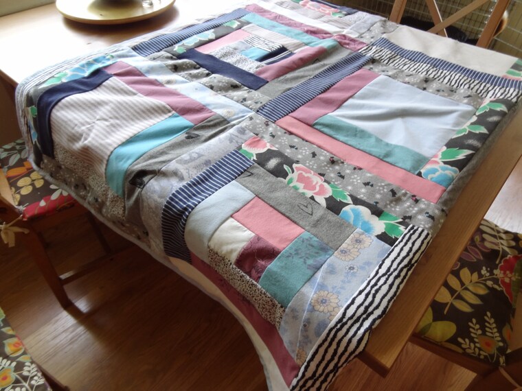 Unique quilt made from a loved ones clothes... -