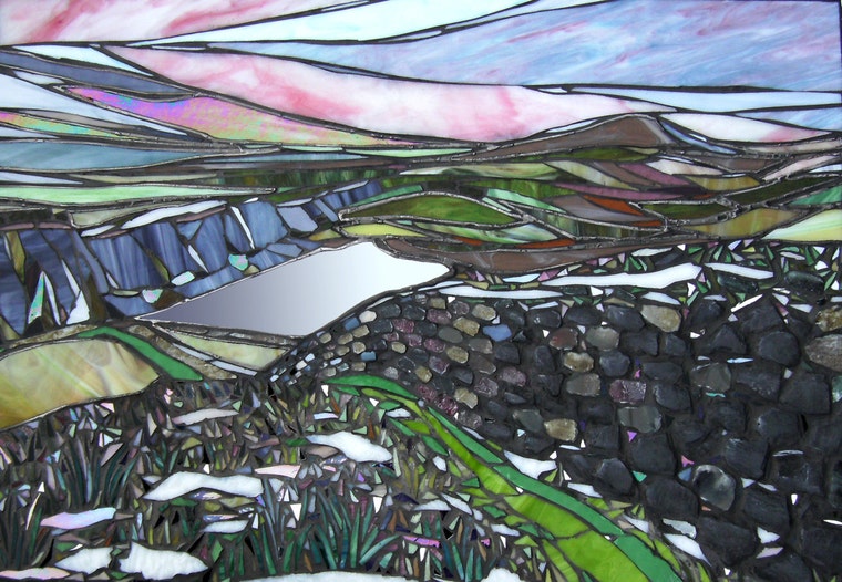 She grew up in the North East of England but spent twenty years living and working in London. She trained as a theatre designer and worked in this field for several years whilst developing her own style and methods as a self taught glass artist. She derives her own special artistic brand, unusual medium techniques with trademark metallic grout through both inspiration and experience. In London, Willa became one of the leading glass artists before returning to the North East in 2001 to launch her business ‘Unique In Glass’. Her studio is based at a Northumbrian farmhouse near the Roman Wall, where the magnificent countryside and historic interest supplies a constant inspiration.