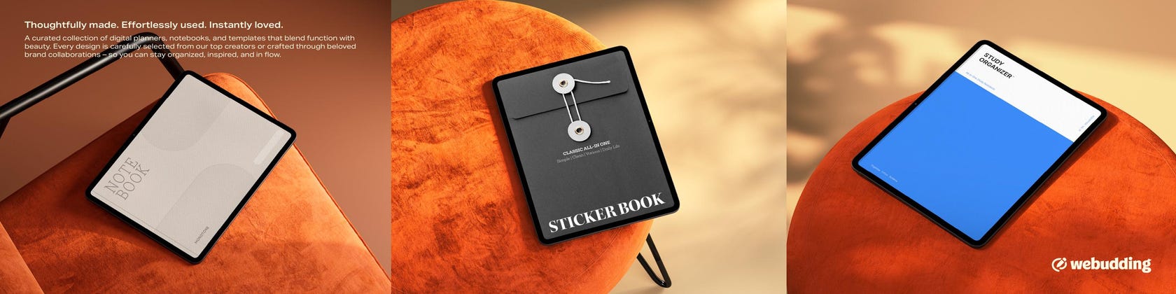 As we shifted into digital planning and note-taking, we discovered a growing community of creators doing the same. So we built Webudding: a marketplace made to support designers like us, and to help people discover well-crafted, genuinely useful digital stationery.