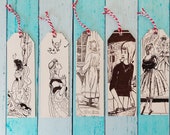 Reutilizo todo lo que puedo de un libro. Los lomos se convierten en marcapáginas y las páginas se convierten en ilustraciones recortadas para paquetes de manualidades o en cuadernos más pequeños.