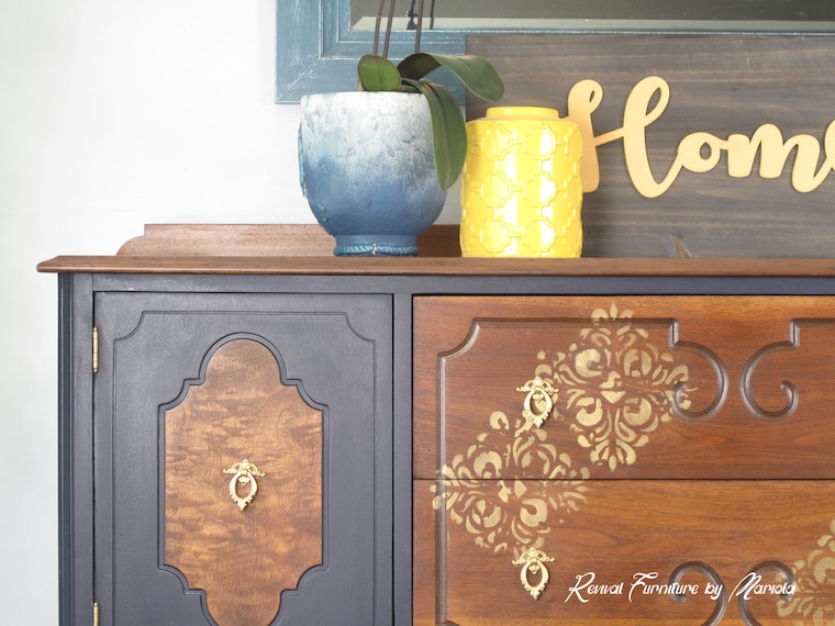 I used Wise Owl Paints and redesign stencil and decor paper on this piece. More photos on my Facebook page. Link Below -