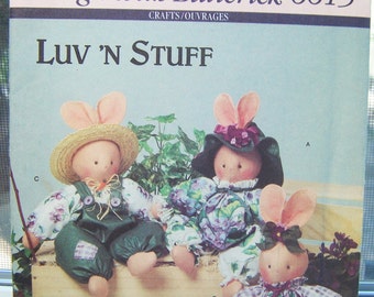 Stuffed Bunny Pattern Butterick 6615 Bunny Doll, SALE, Craft Sewing Pattern, Clothing Luv 'n Stuff Soft Toy Play Animals, UNCUT