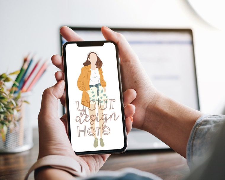 A phone mockup design I was working. Picture taken from one of my device listings showing phone mockups with graphics -
