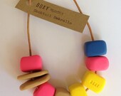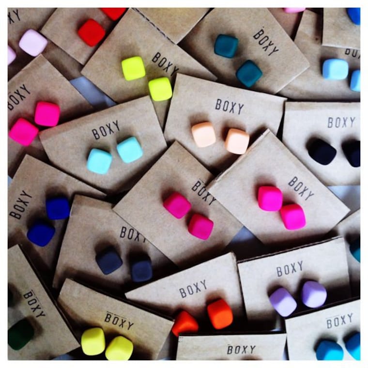 Boxy is known for it's use of chaotic colour and simple form. We work hard to create a product that offers quality craftsmanship and we sculpt every single one of our square beads by hand. Colour is obviously a big deal over here at Boxy. We are constantly on the lookout for inspiration and find it in the most unlikely places - a line of dialogue, a vintage magazine page, a memory. The creative process is something we get excited about. Naming the pieces is the best part - we love connecting colour to a concept. Some names are cryptic beyond comprehension but there is always logic lurking there somewhere.