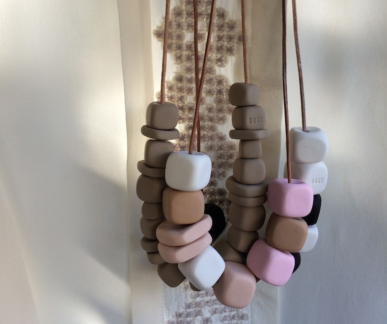 BOXY has been lucky enough to be featured in magazines and blogs. We are even spotted on television from time to time. You know your necklace is an original Boxy piece because it says so. Every necklace features a signature, hand stamped 'BOXY' impression that is fired into the bead.