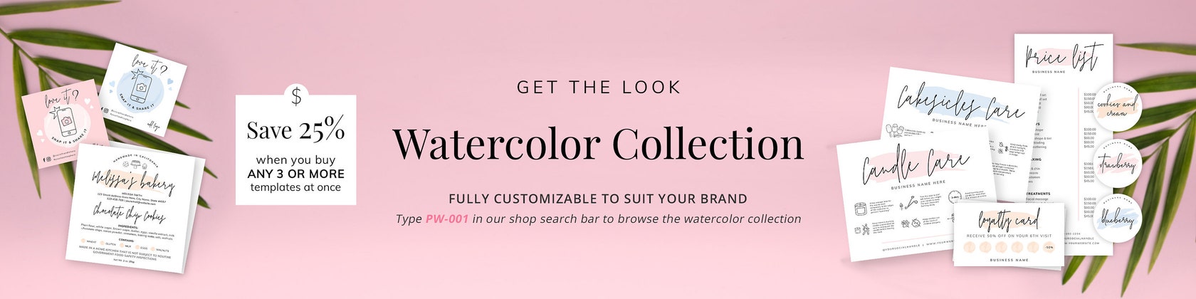 En mi tienda encontrarás una amplia gama de plantillas editables prediseñadas que puedes utilizar para marcarte a ti mismo y a tu negocio. Encuentre las plantillas perfectas para su negocio, desde plantillas de logotipos, tarjetas de visita, tarjetas de cuidado, certificados de regalo, listas de precios, plantillas de redes sociales, banners web hasta etiquetas, facturas y más.