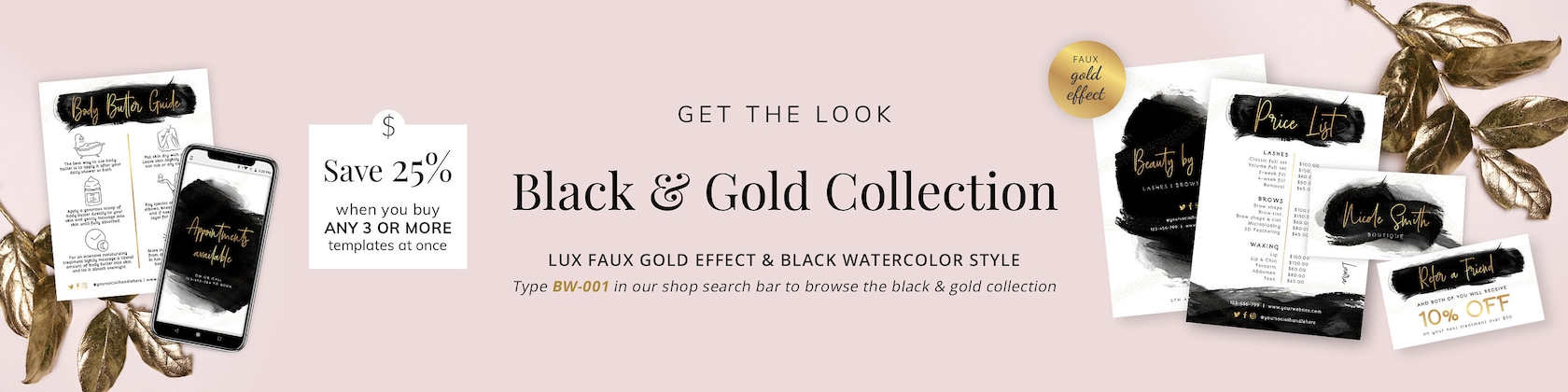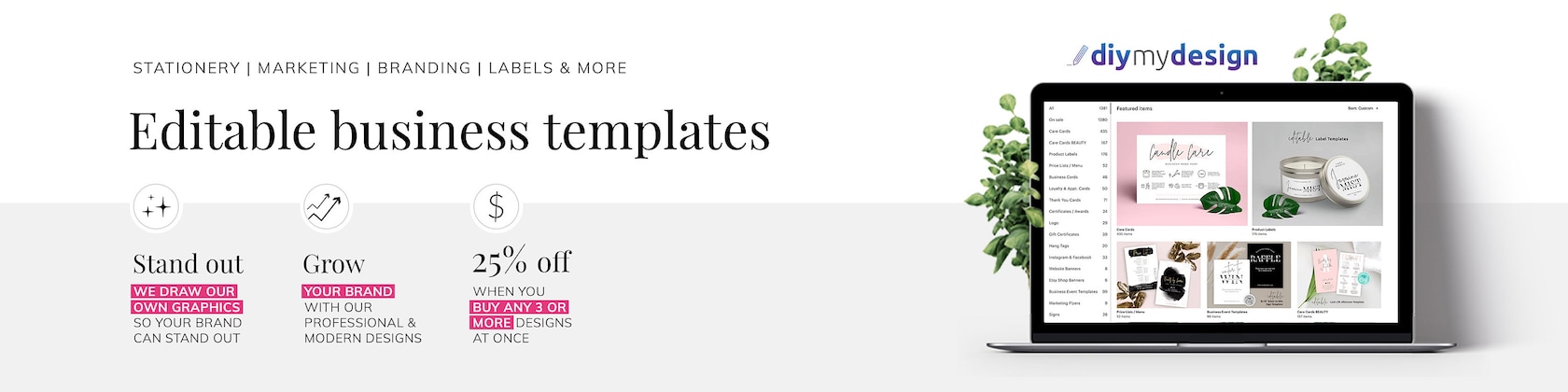 In my shop you will find a wide range of pre-designed editable templates that you can use to brand yourself and your business. Find the perfect templates for your business - anything from logo templates, business cards, care cards, gift certificates, price lists, social media templates, web banners to labels, invoices and more.