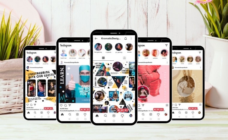 Kromatic Design Studio è un negozio che vende modelli Canva per professionisti e aziende, con una varietà di grafica utile sui social media, online e nel marketing stampato. Modelli di Instagram per aiutare i profili dei social media, sia personali che aziendali, e aumentare la loro presenza online.