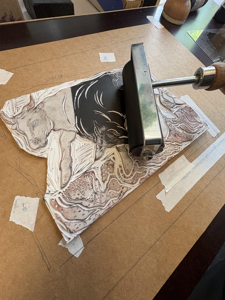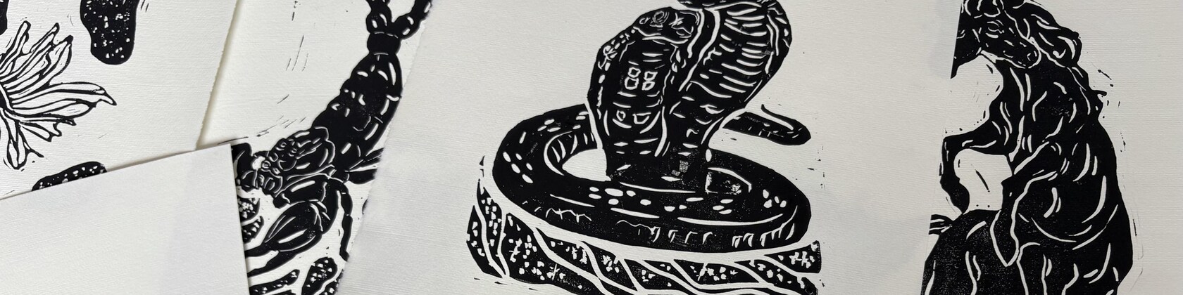 surreal handprinted art, cards and stickers